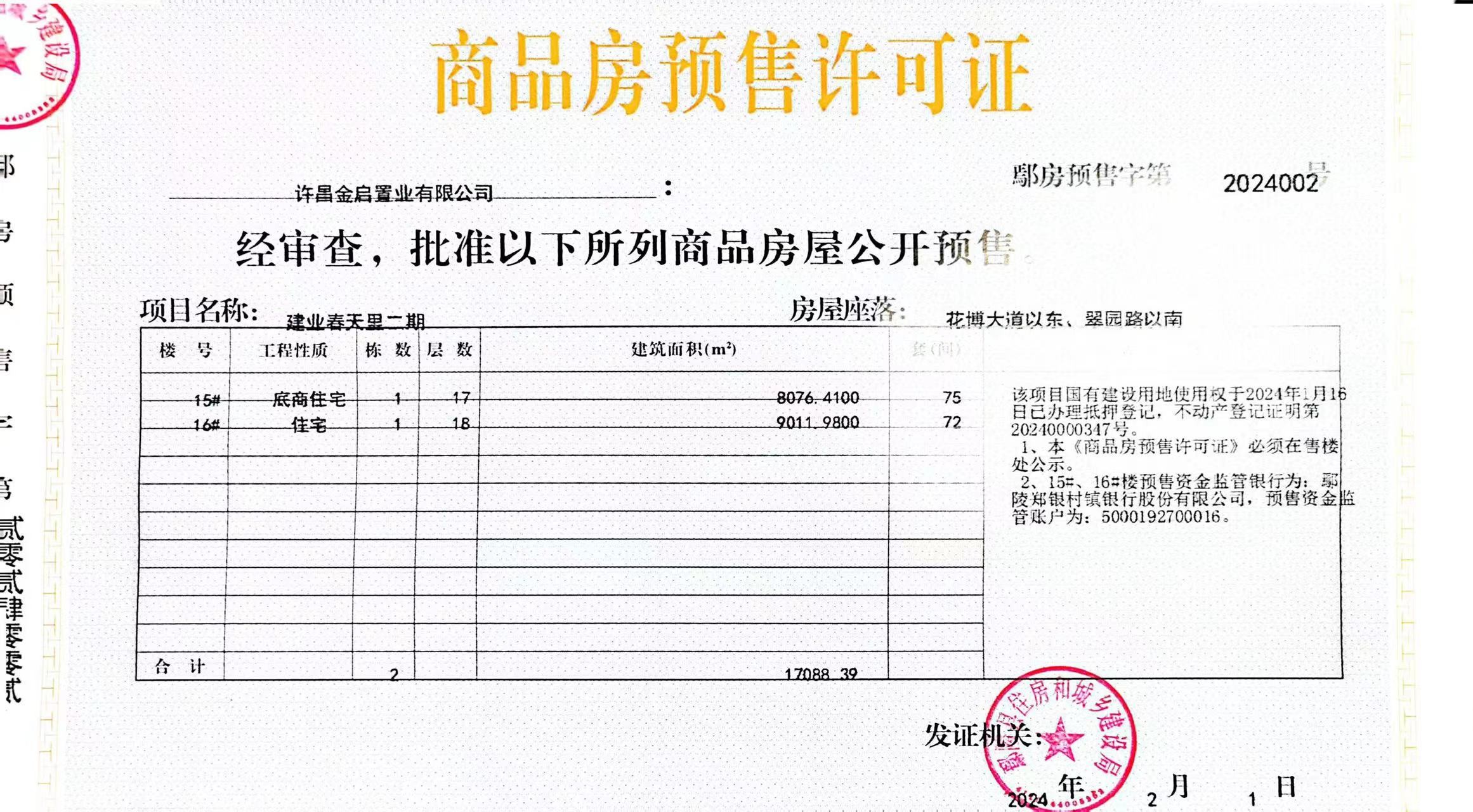 预售许可证号:2024002