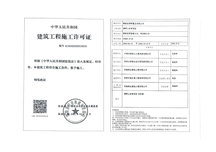 经现场勘查并审核点点网址手机版下载博群置业有限公司博群上和府7#楼项目建筑工程施工许可证资料,项目名称:博群上和府7#楼,位置:翠园路以北、学府路以东,开发商:点点网址手机版下载博群置业有限公司,发证机构:点点网址手机版下载住房和城乡建设局,建筑施工许可证号为:411024202503130101,发证日期:2025年3月13日,建筑规模:20885.47m,符合发放建筑施工许可证条件,现予以公示。